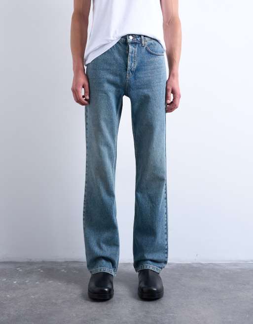 Topman – Niebieskie sztywne jeansy dzwony