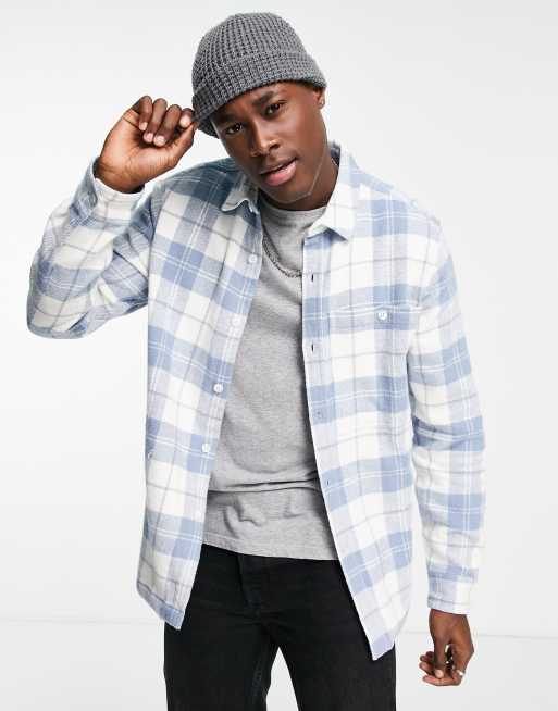 Topman – Niebiesko-biała koszula ze szczotkowanej bawełny w kratę
