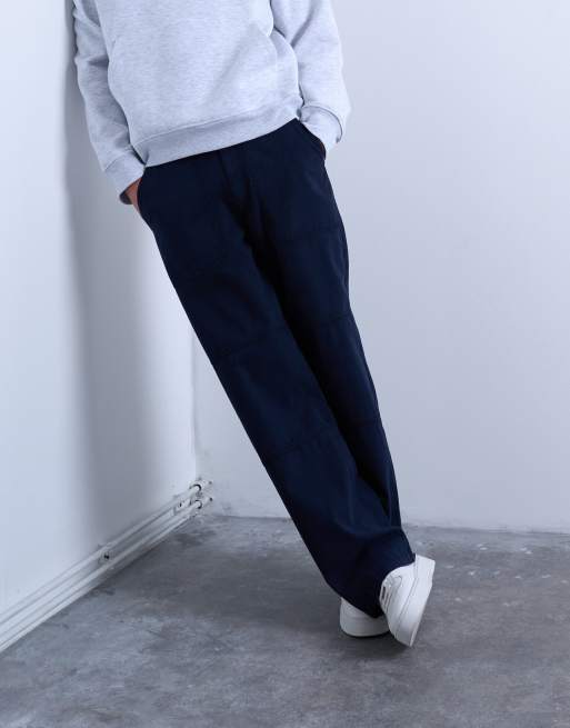 Topman – Obszerne granatowe chinosy z diagonalu