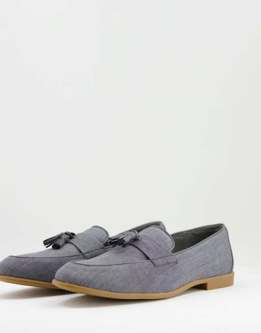 Topman – Piper – Szare loafersy z tkaniny chambray z frędzlami