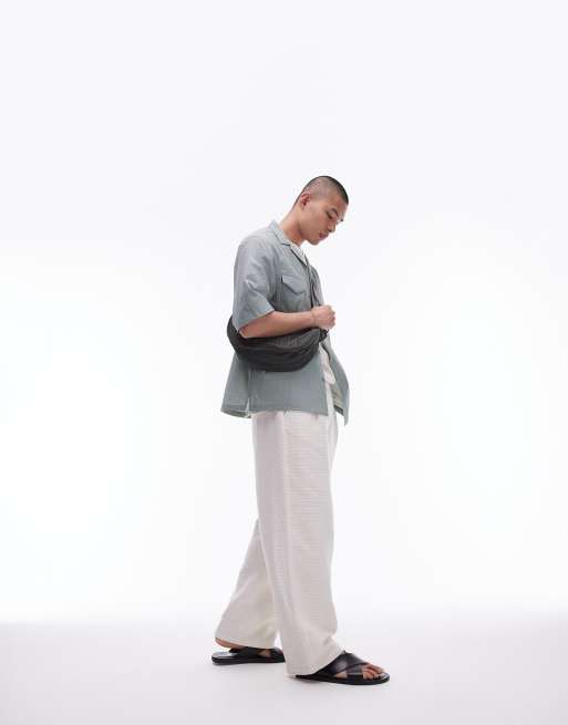 Topman Premium – Bardzo szerokie grube spodnie z fakturowanego materiału w kolorze ecru