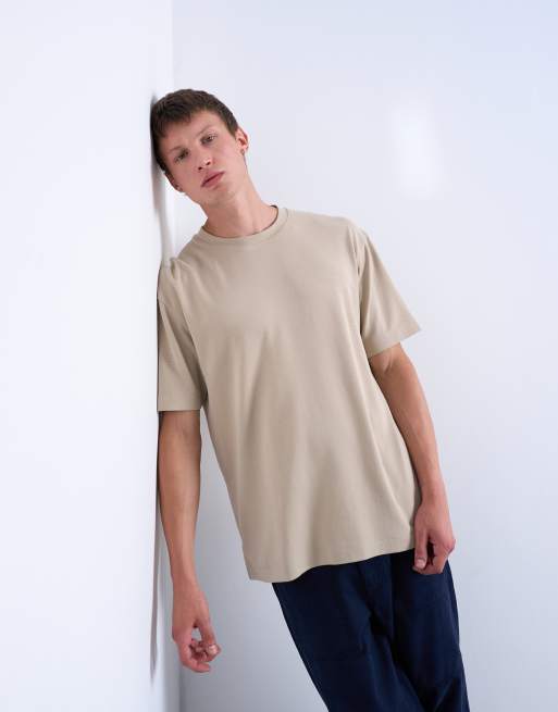 Topman – Szarobeżowy, luźny T-shirt z materiału interlock