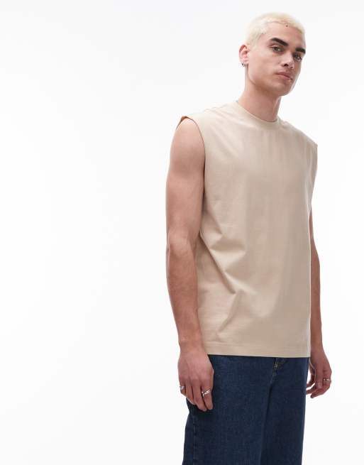 Topman – Szarobeżowy T-shirt o luźnym kroju bez rękawów