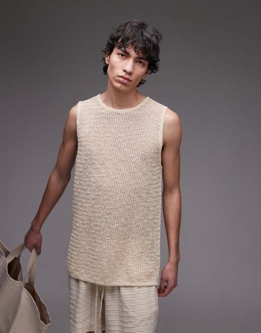 Topman – Szarobeżowy top bez rękawów o luźnym kroju z fakturowanej dzianiny