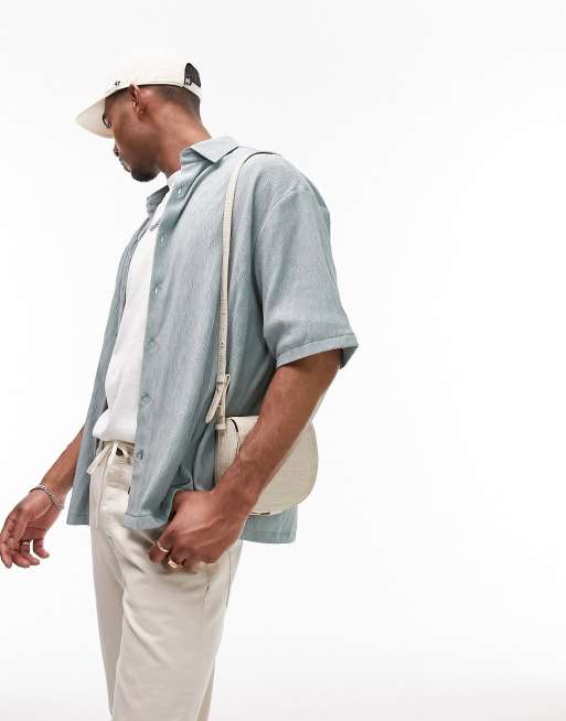 Topman – Szałwiowa fakturowana koszula z krótkimi rękawami