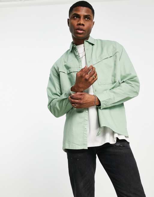 Topman – Szałwiowa koszula wierzchnia z ukośną kieszenią