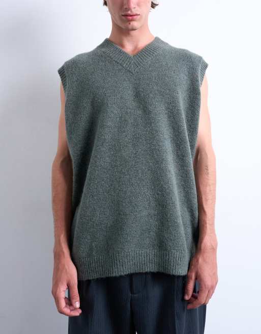 Topman – Szałwiowy dzianinowy top bez rękawów oversize z dekoltem w szpic
