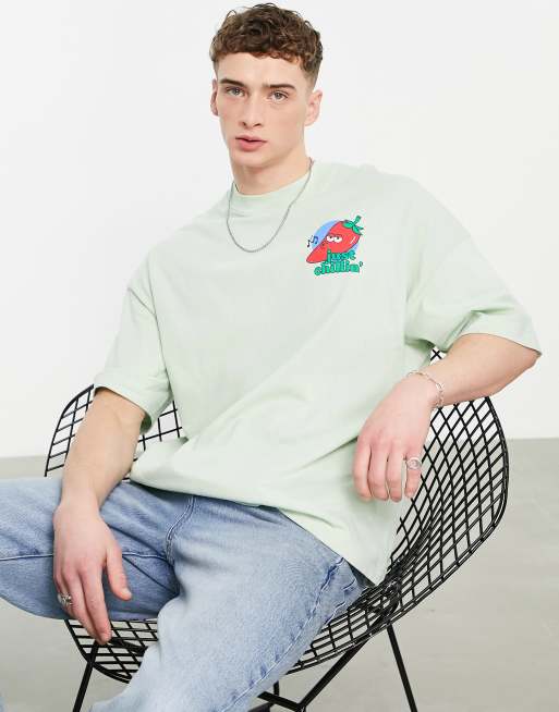 Topman – Szałwiowy T-shirt extreme oversize z grafiką