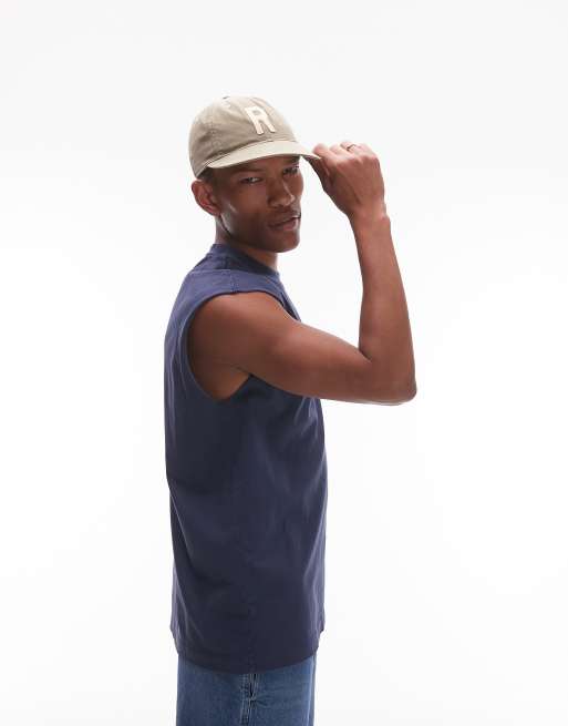 Topman – T-shirt bez rękawów o luźnym kroju w spranym niebieskim kolorze