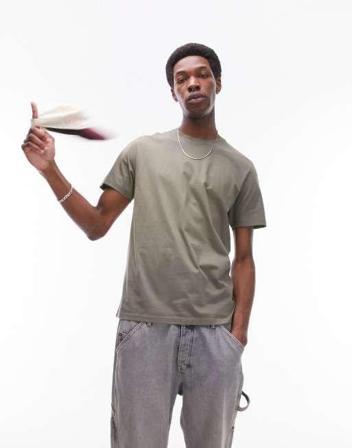 Topman – T-shirt o klasycznym kroju w kolorze khaki