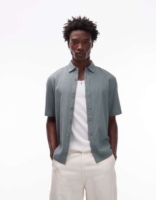 Topman – Teksturowana szałwiowa koszula o luźnym kroju z krótkim rękawem