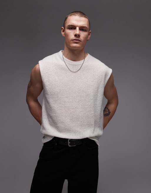 Topman – Top bez rękawów oversize z fakturowanej dzianiny w kolorze ecru