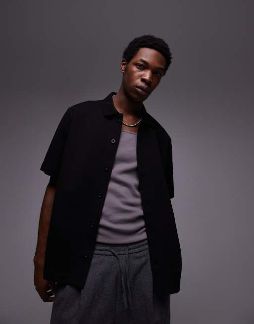 Topman – Zapinana na guziki czarna dżersejowa koszula o luźnym kroju