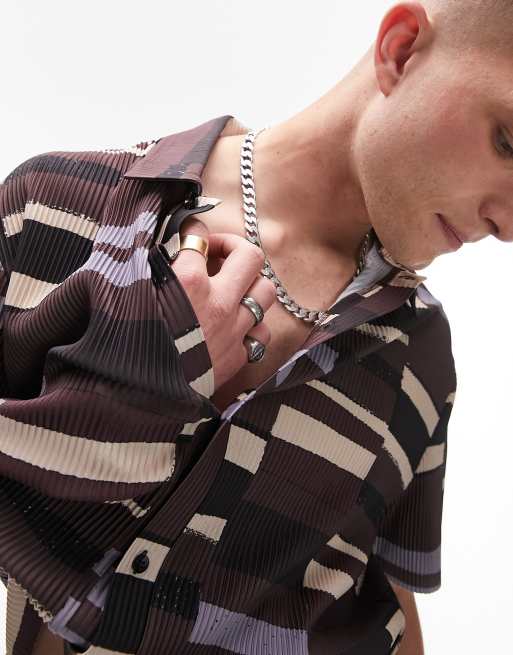 Topman – Zapinana na guziki plisowana brązowa koszulka polo oversize