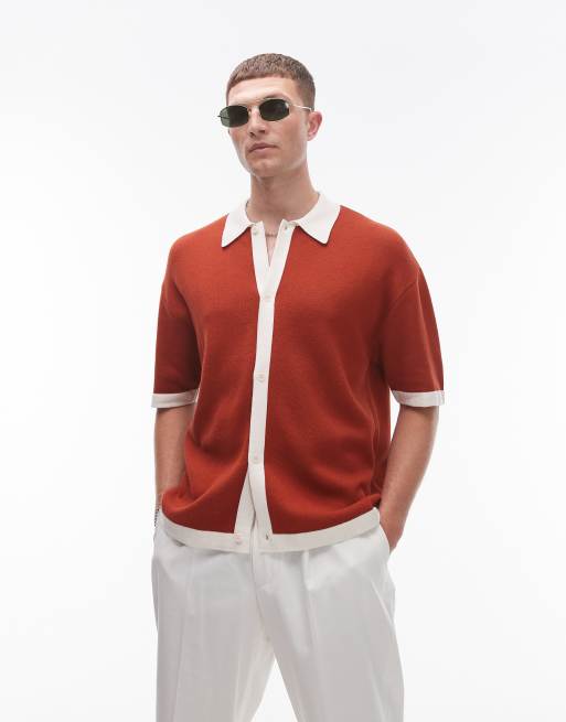 Topman – Zapinany na guziki T-shirt z kontrastowymi elementami