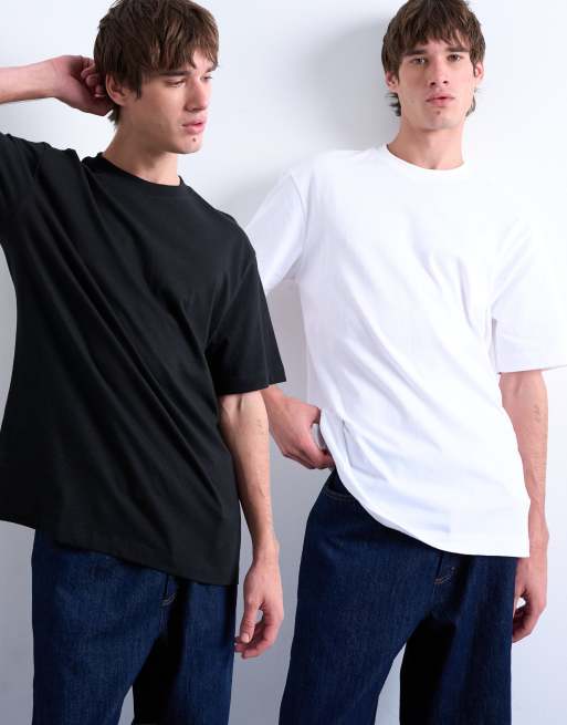 Topman – Zestaw 2 T-shirtów o klasycznym kroju w kolorach czarnym i białym