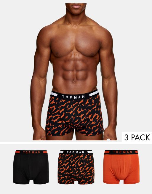 Topman – Zestaw 3 par bokserek: czarne, pomarańczowe i w panterkę