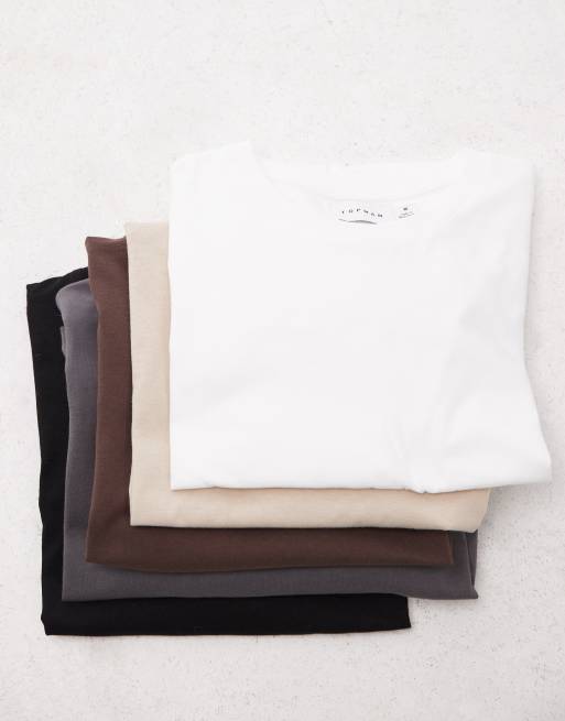 Topman – Zestaw 5 klasycznych T-shirtów w kolorze czarnym, białym, szarobeżowym, grafitowym i brązowym