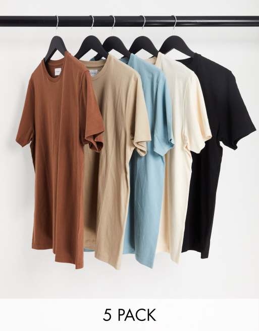 Topman – Zestaw 5 klasycznych T-shirtów w kolorze czarnym, ecru, niebieskim, kamiennobeżowym i brązowym