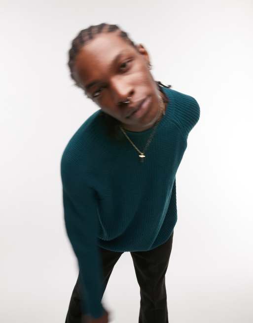 Topman – Zielony dzianinowy sweter o regularnym kroju z rękawami raglanowymi
