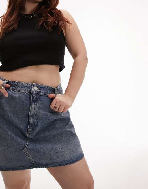 Topshop Curve – Niebieska spódnica jeansowa z wysokim stanem