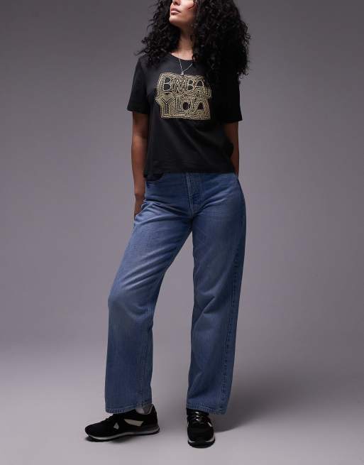 Topshop – Hourglass – Niebieskie luźne jeansy z prostymi nogawkami i średnim stanem