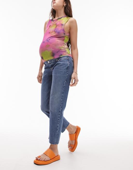 Topshop Maternity – Niebieskie jeansy zasłaniające brzuch z prostymi nogawkami