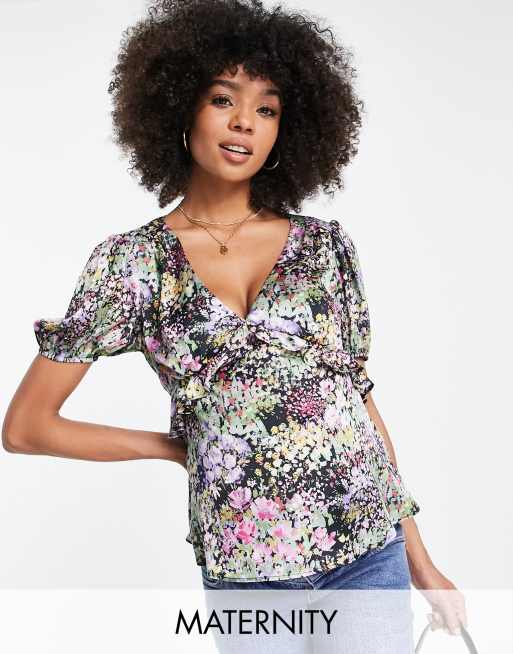 Topshop Maternity – Satynowa bluzka w kolorowe kwiaty