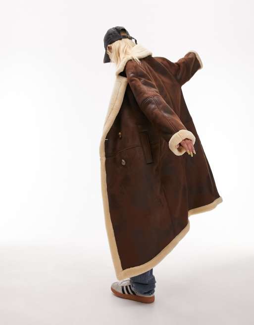 Topshop Petite – Brązowy płaszcz pilotka o wydłużonym fasonie