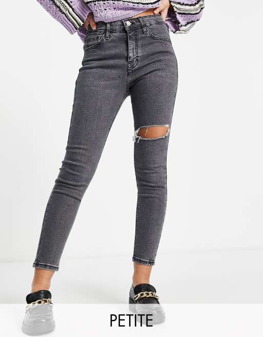 Topshop Petite – Jamie – Ciemnoszare jeansy z rozdarciem na udzie