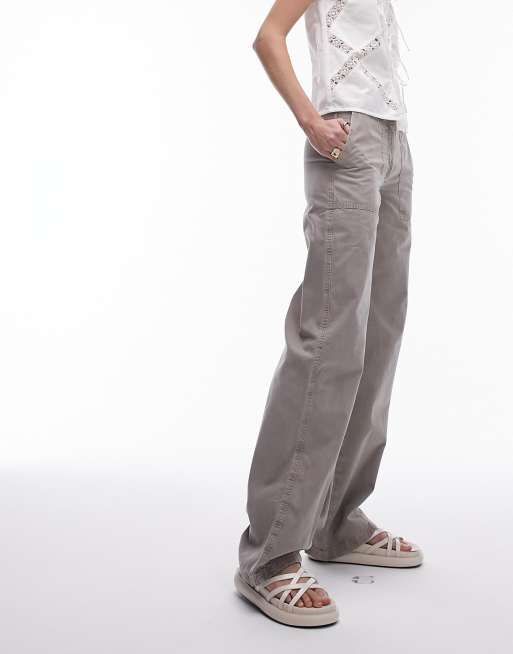 Topshop Tall – Spodnie z prostymi nogawkami i obniżonym stanem w spranym brązowoszarym kolorze