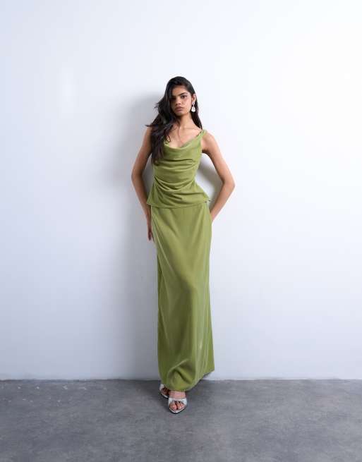 Topshop – Aksamitna zielona spódnica midaxi, część zestawu