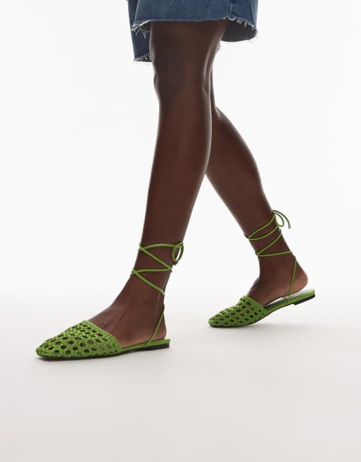 Topshop – Arri – Zielone płaskie buty z materiału tekstylnego ze sznurowaniem nad kostką