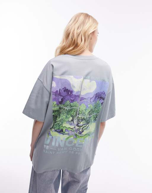 Topshop – Art Museum – Niebieski T-shirt oversize z licencjonowaną grafiką z obrazem Van Gogha