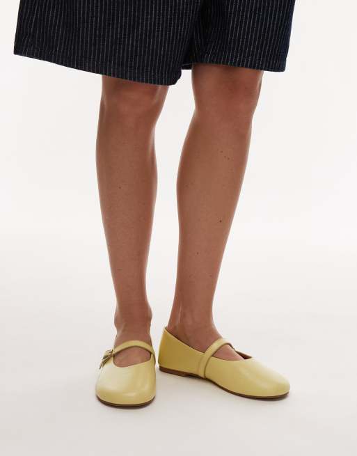 Topshop – Ash – Jasnożółte płaskie balerinki z zapięciem na klamrę i marszczeniem ze skóry naturalnej