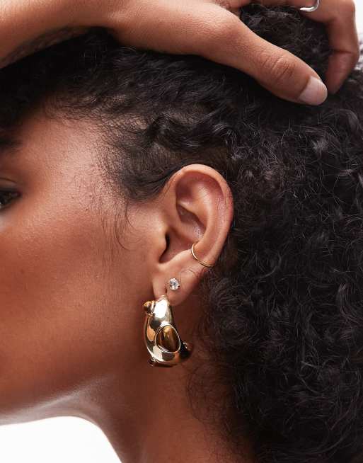 Topshop – Babi – Grube kolczyki w kolorze złota z brązowymi kamieniami