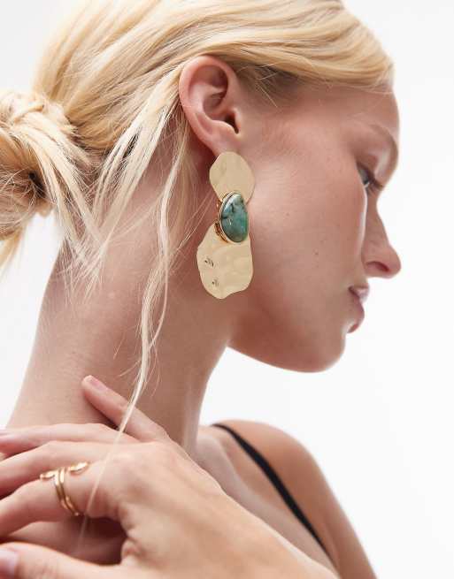 Topshop – Bailey – Kolczyki w odcieniu złota z zielonymi kamieniami