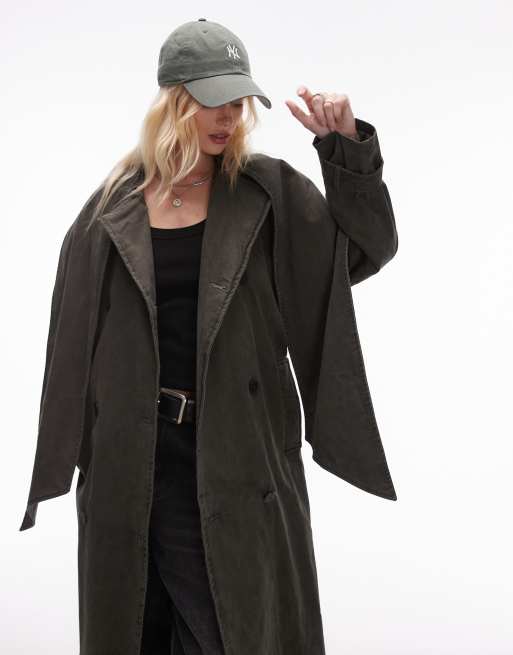 Topshop – Bawełniany trencz z łączonych elementów w spranym zielonym kolorze