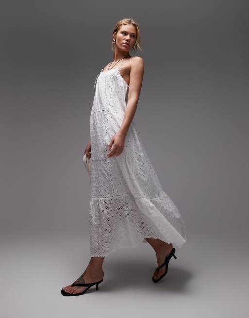 Topshop – Biała trapezowa sukienka midi z haftem angielskim