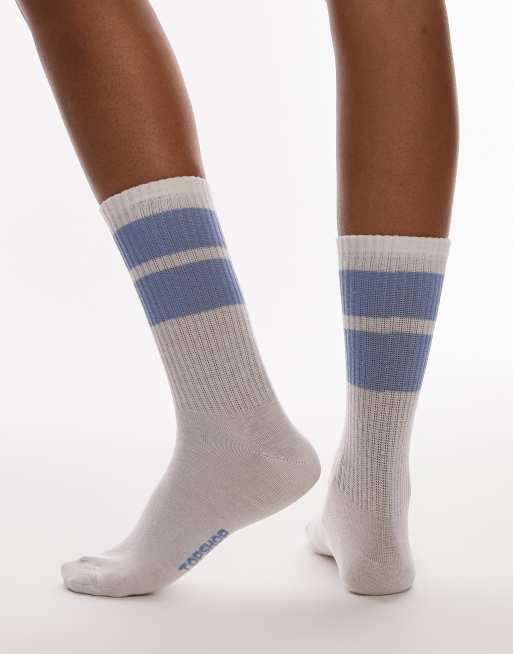 Topshop – Białe prążkowane skarpetki sportowe z jasnoniebieskimi paskami