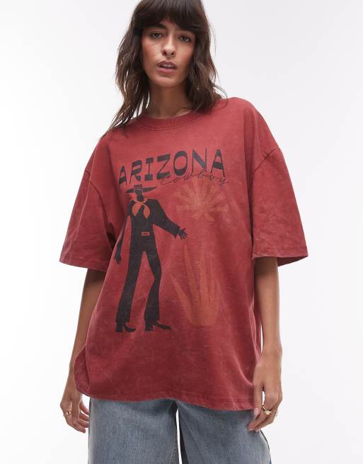 Topshop – Bordowa koszulka oversize z grafiką i napisem „Arizona”