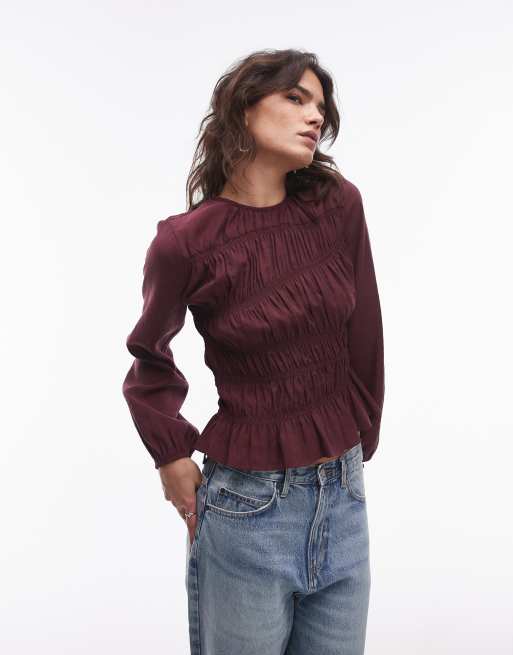 Topshop – Bordowy asymetryczny top marszczony