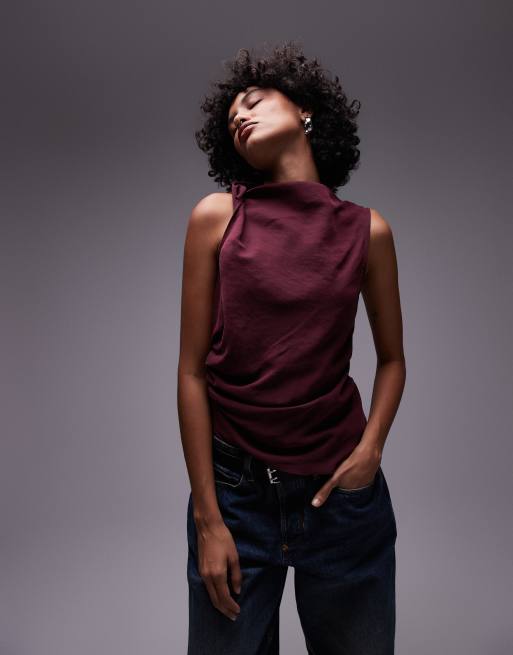 Topshop – Bordowy top bez rękawów z ozdobnym węzłem z boku