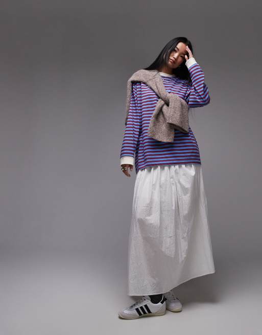 Topshop – Bordowy top w paski o bardzo luźnym kroju z długim rękawem