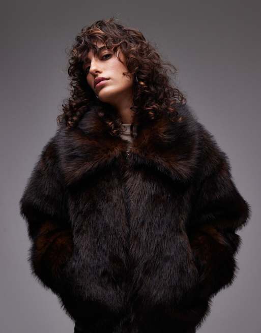 Topshop – Brązowa krótka kurtka bomberka ze sztucznego futra