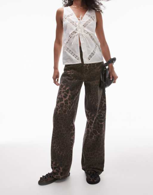 Topshop – Brązowe cętkowane jeansy o obszernym kroju z podwyższonym stanem