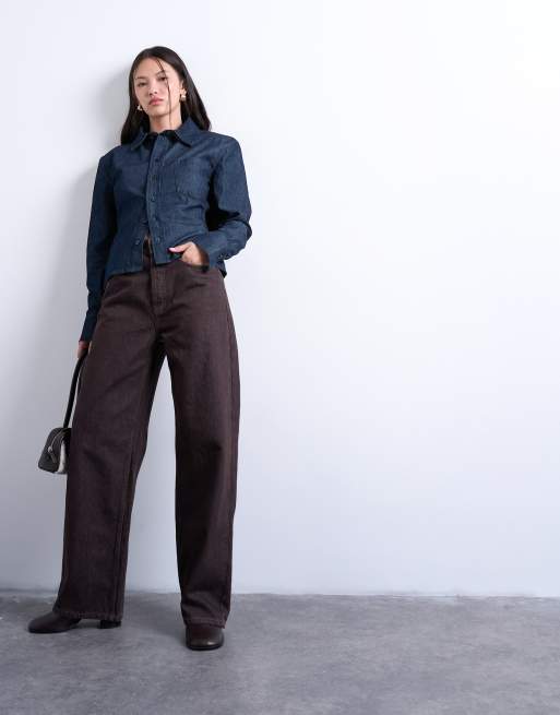 Topshop – Brązowe jeansy kolumnowe ze średnim stanem