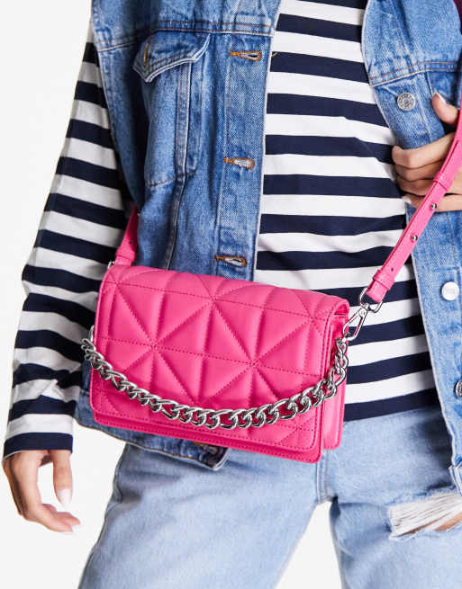 Topshop – Cali – Jaskraworóżowa pikowana torebka crossbody z łańcuszkiem