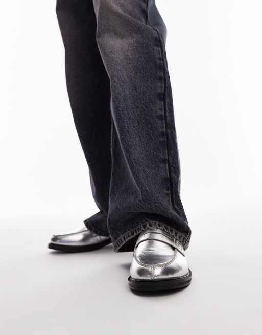 Topshop – Callie – Srebrne skórzane loafersy