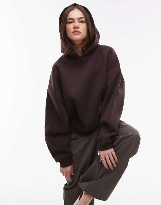 Topshop – Ciemnobordowa bluza z kapturem z ozdobnymi szwami